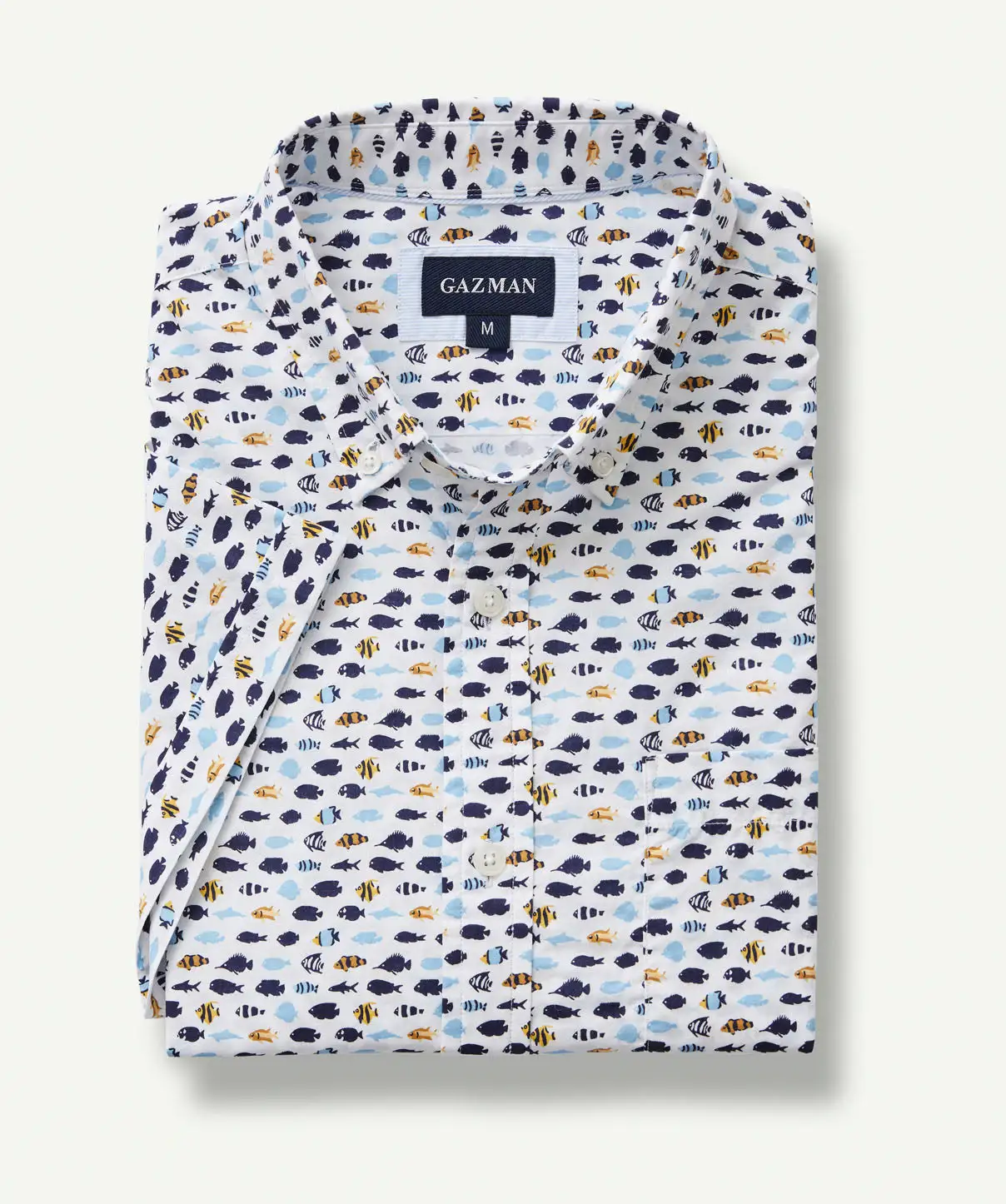 This light weight cotton shirt features a stylish fish pattern that makes for a fun and easy weekend option. This regular fitting shirt is made from a soft cotton that pairs well with denim for a casual off duty style.