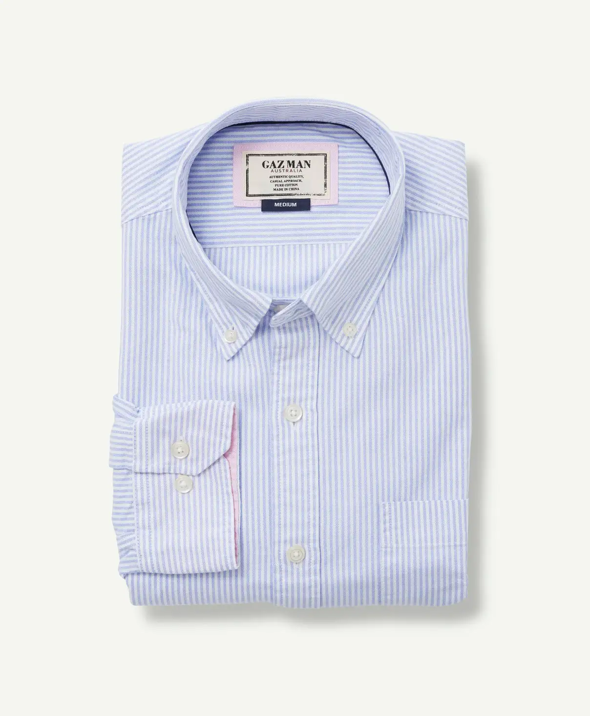 Gazman Casual Oxford Bengal Stripe Shirt – Sky Blue
