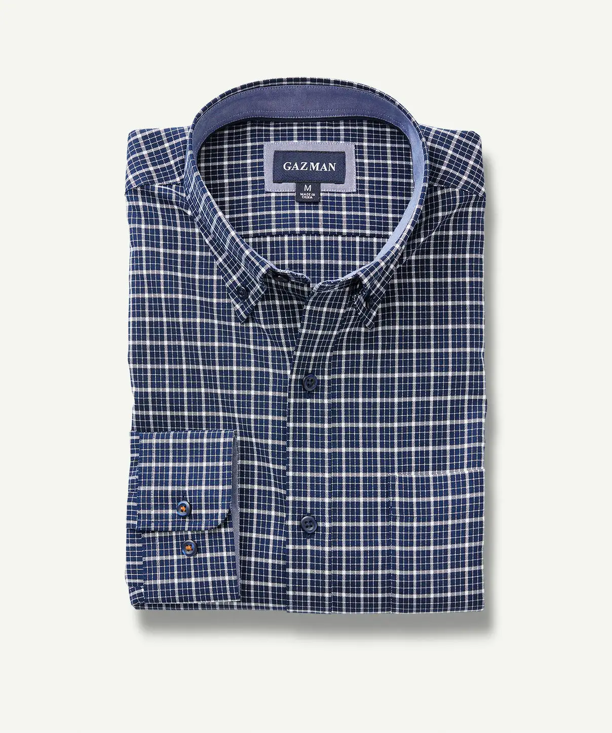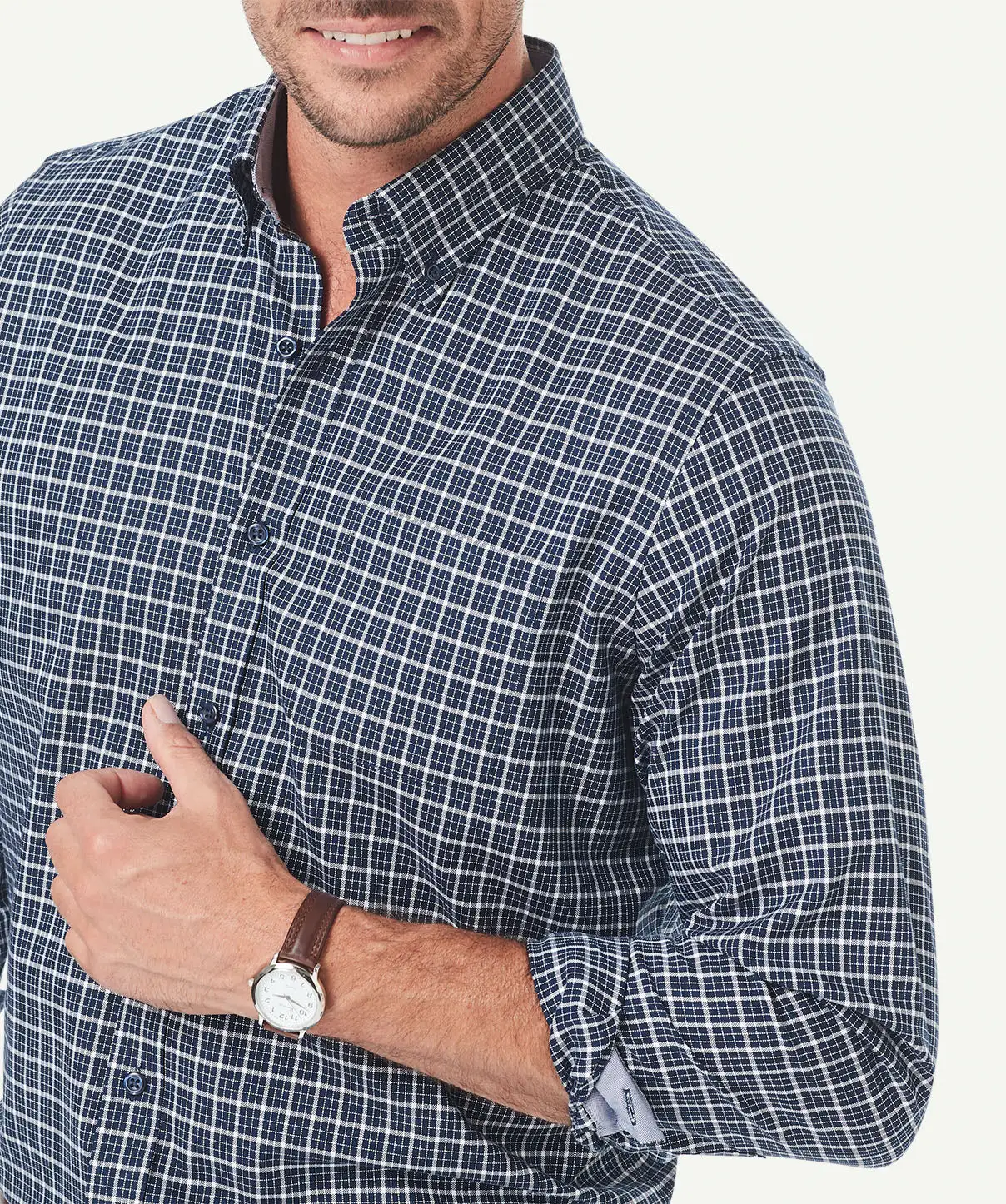 Made from Cotton and finished with easy care technology, the easy care oxford check shirt is easy to iron and stays looking crease free for longer. Wear this dark navy check shirt with chinos or jeans for easy style.