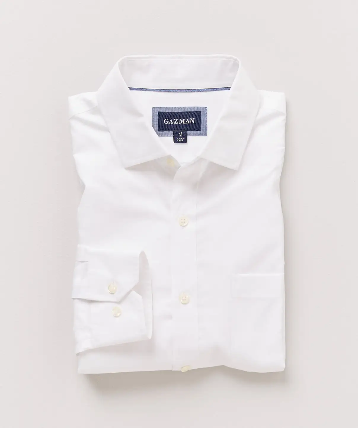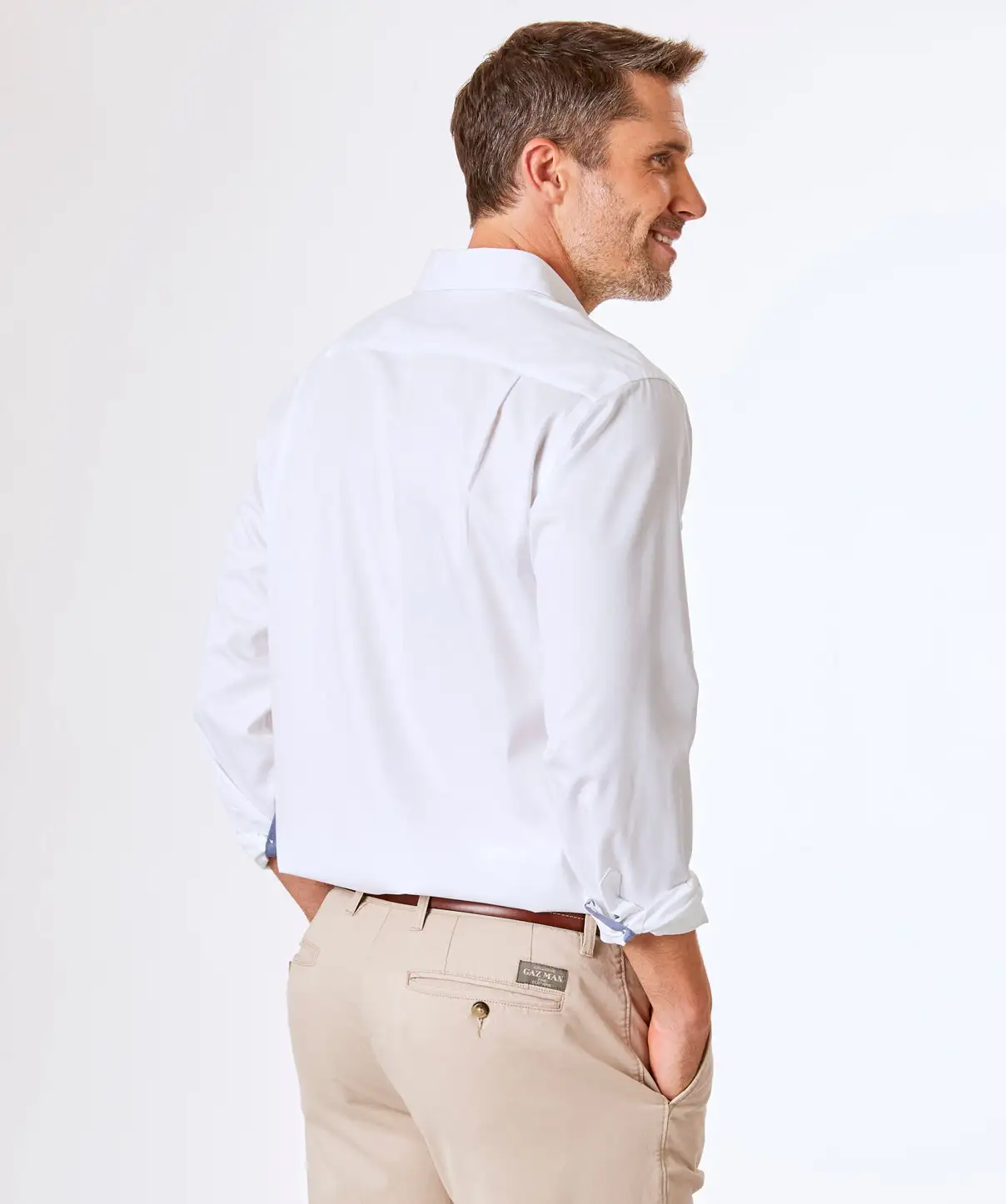 The foundation of a classic outfit, a plain twill shirt is a blank canvas for your personal style. Dress this men’s shirt up with a tie and jacket, or keep things casual with the sleeves rolled up and a pair of chinos. Available in White and Navy, this wardrobe essential features a chest pocket and a spread collar for classic styling.