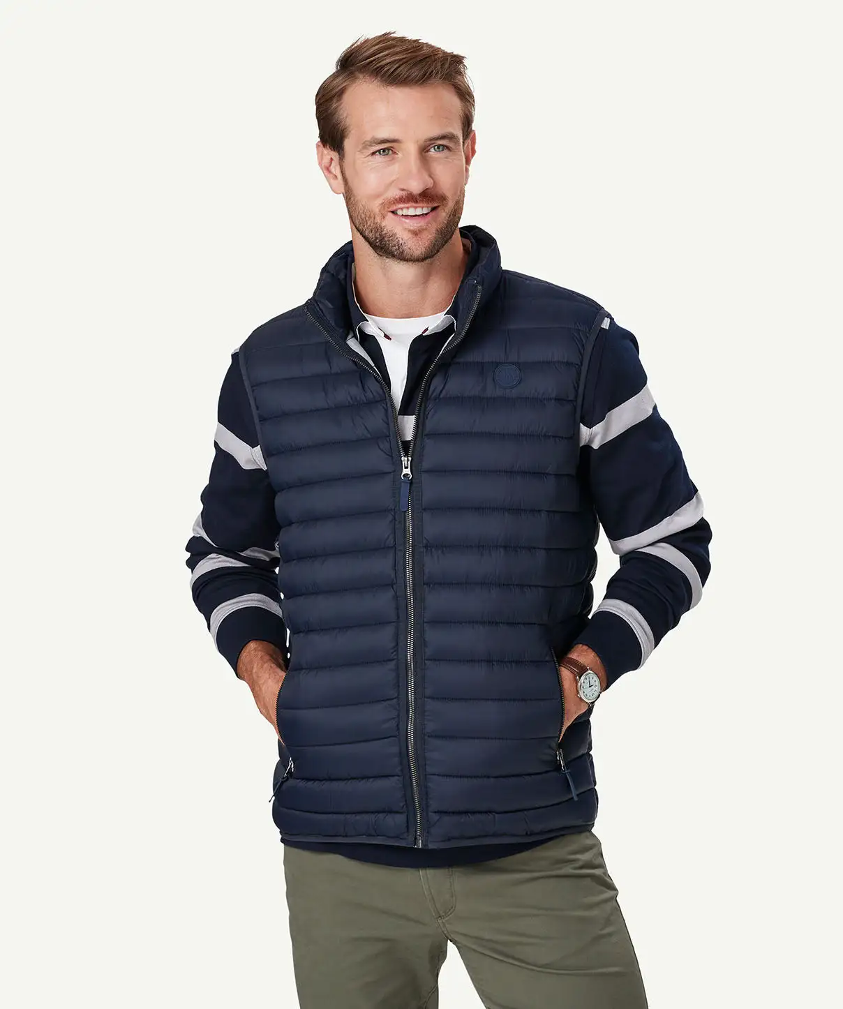 Our lightweight puffer vest is an essential when layering and staying warm in the colder months. Using Sorona® eco filling, a patented technology that allows superior compression and recovery. This filling is lightweight, insulating, breathable and retains body heat. Layer over a GAZMAN classic rugby jumper for added style and warmth.