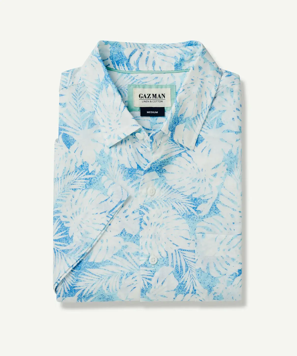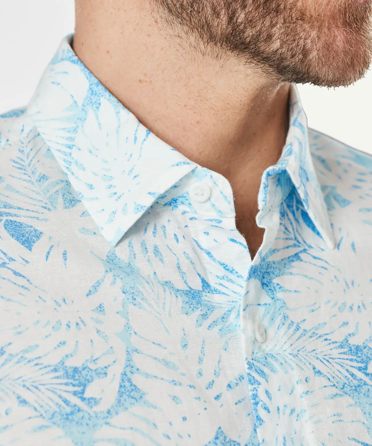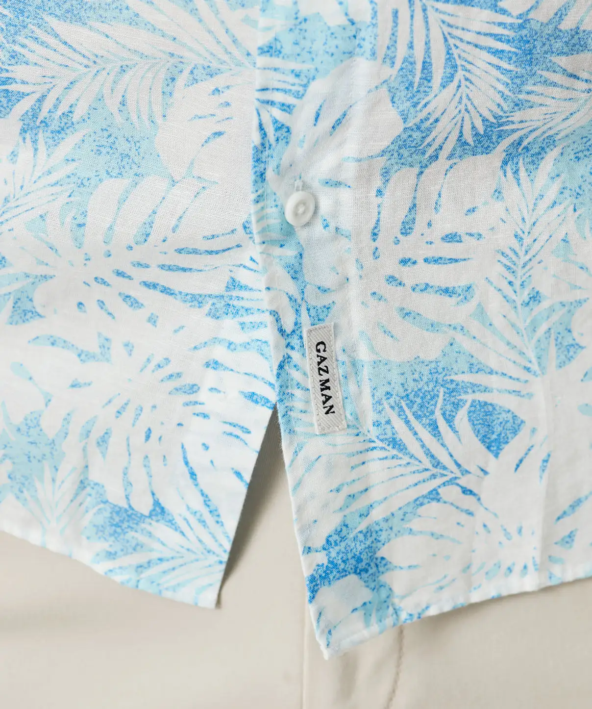 Gazman Linen Blend Fern Print Short Sleeve Shirt – Sky Blue