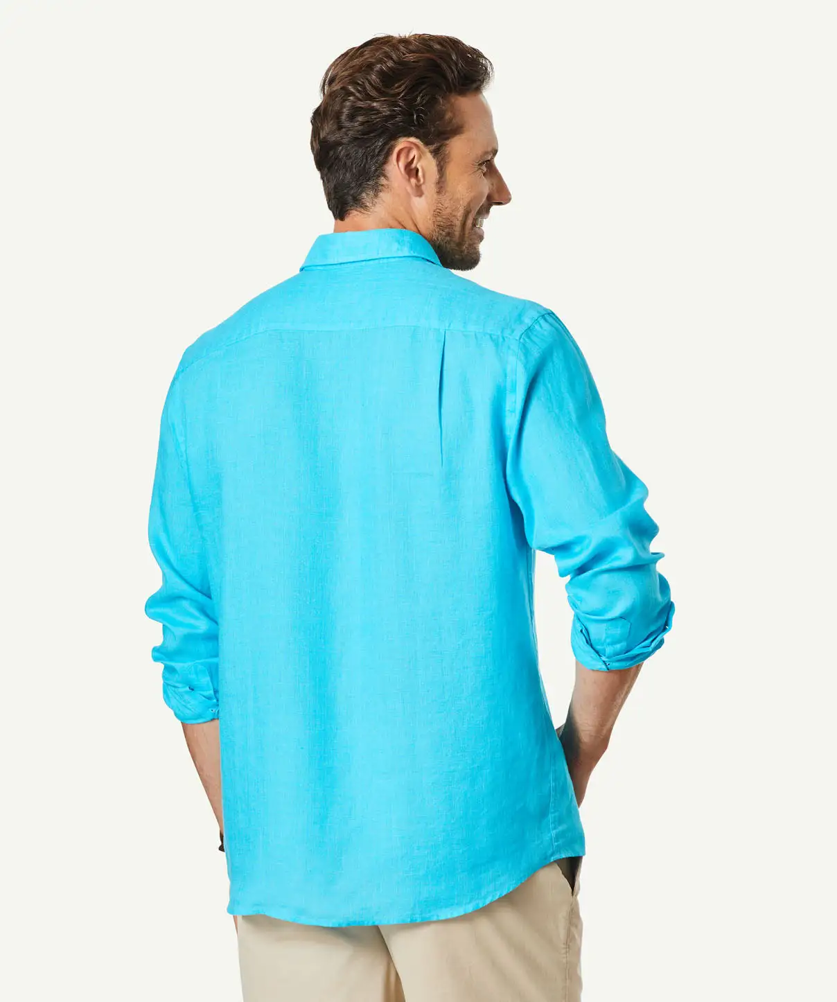 This soft washed french linen shirt is extremely lightweight, breathable and comfortable. The Linen Plain shirt is cut in a regular fit for a relaxed and casual style and features natural fibres and tucks on the back allowing for greater ease of movement and comfort. Available in ten easy to style colours that pair well with both jeans and chinos.