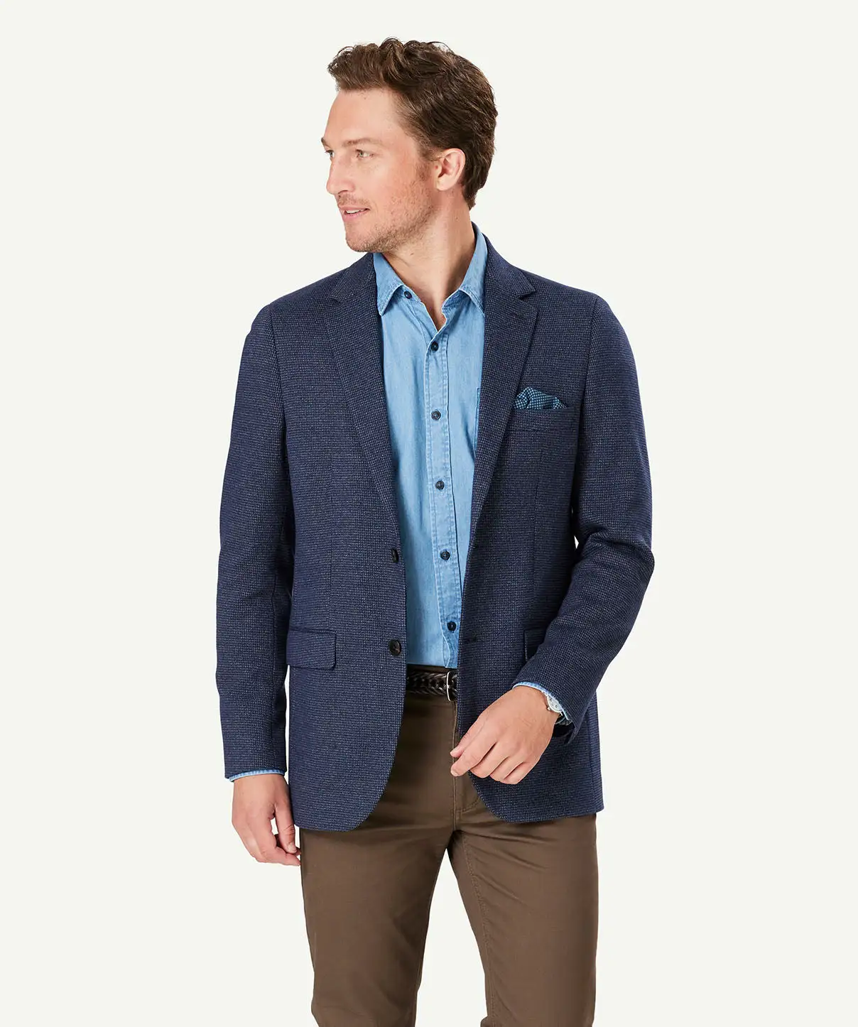 Made from a polyester blend with stretch properties for the active man on the move, this Stretch Houndstooth Sports Jacket focuses on quality and comfort without compromising on style and fit. Featuring a double back vent , internal chest pockets and exterior pockets, this jacket is not only stylish but functional as well. Depending the occasion dress it smart with a pair of our modern chinos or jeans for a more casual look.