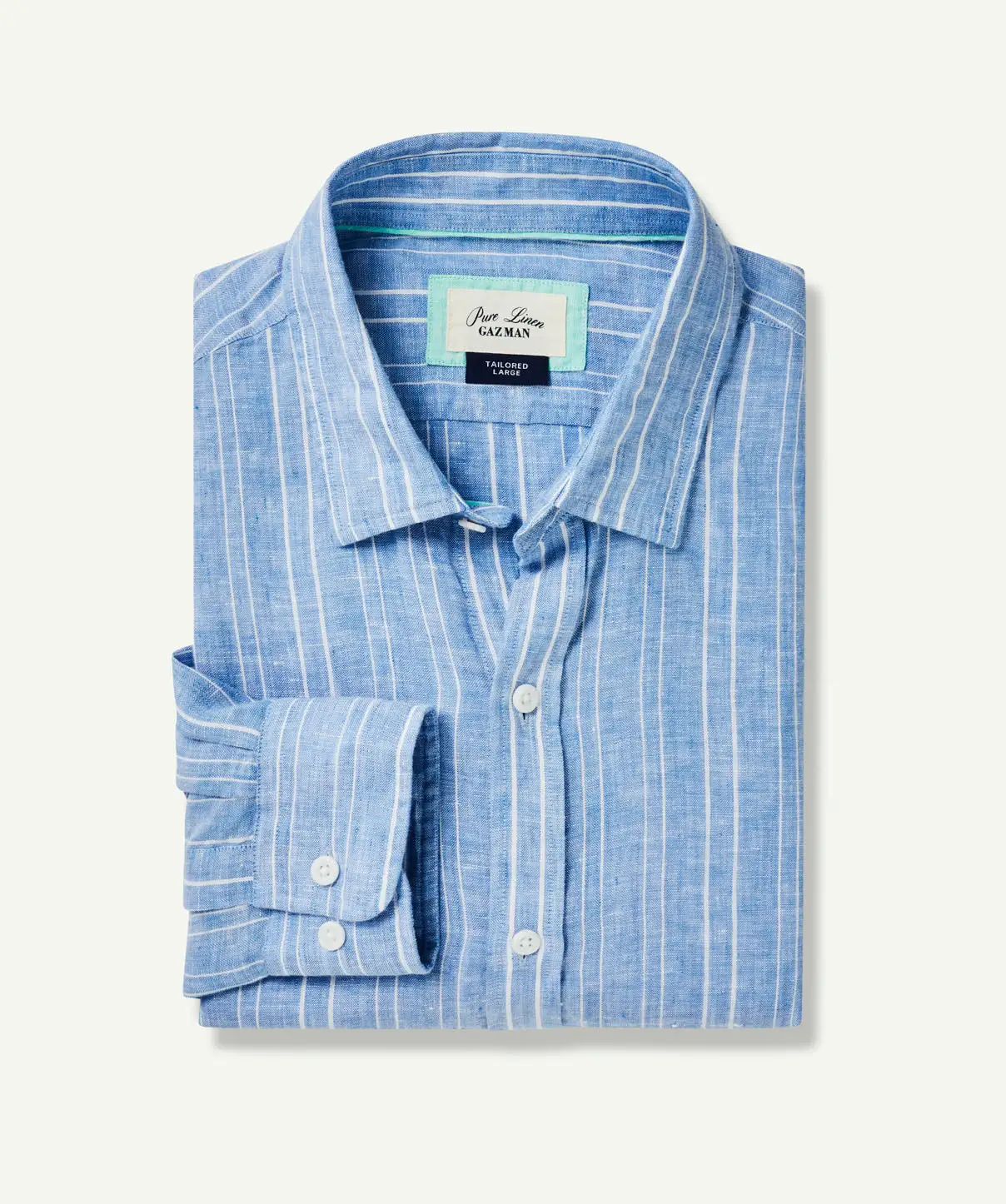 This soft washed linen shirt is extremely lightweight, breathable and comfortable. Constructed from french linen with a subtle pattern, our tailored fit linen stripe shirt makes for smart and easy outfitting.