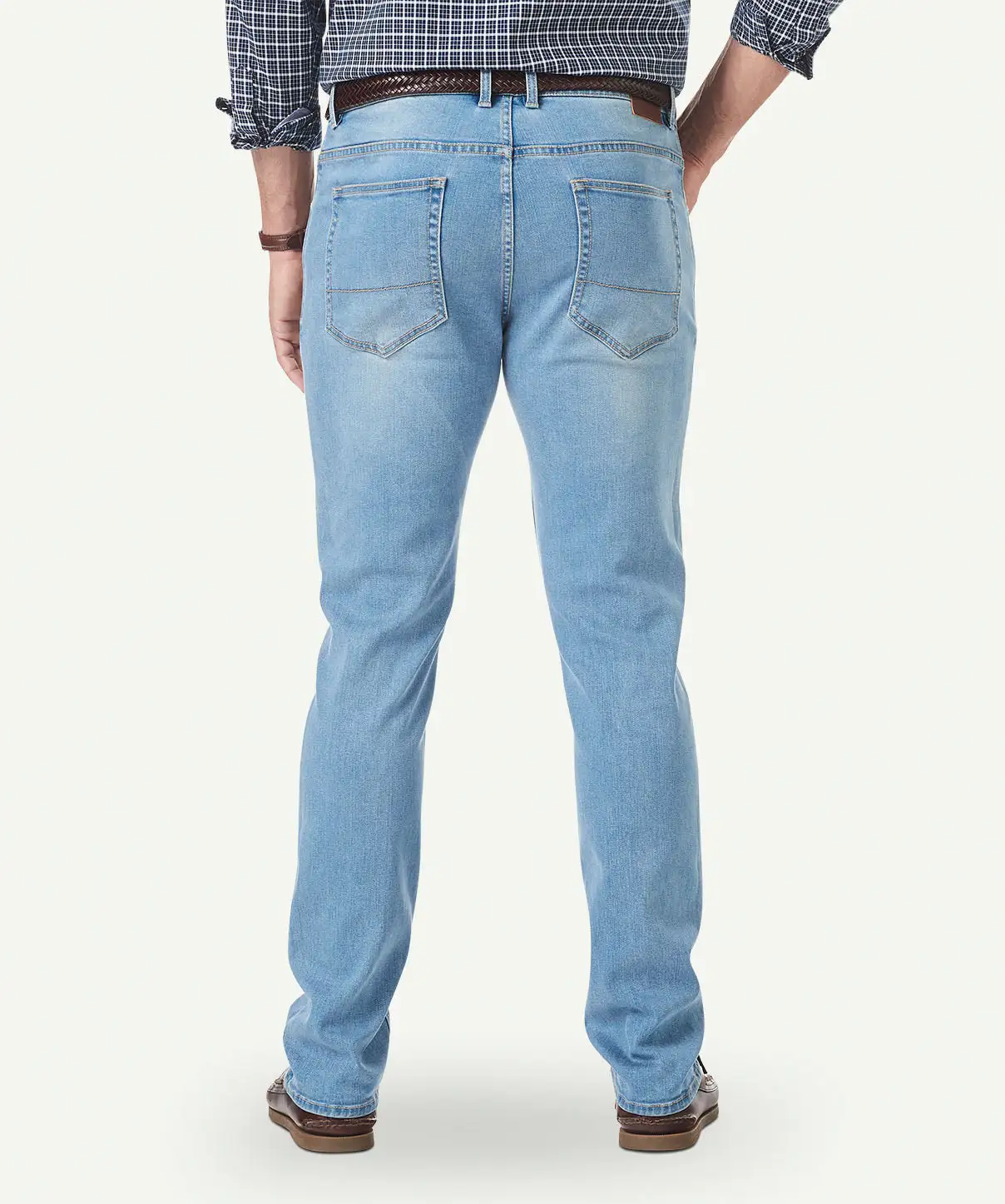 Made from soft, light Tencel fabric, our straight fit jeans are an easy addition to your wardrobe. This style emphasizes the texture of the denim, creating a vintage look that pairs well with a printed shirt or t-shirt.