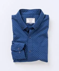 Gazman Tailored Casual Oxford Check Long Sleeve Shirt – Navy
