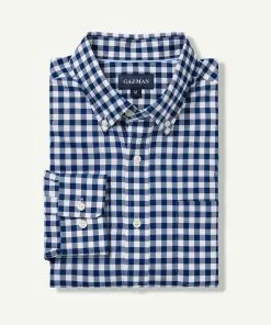 Gazman Easy Care Melange Check Long Sleeve Shirt – Navy Melange